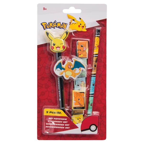 Schrijf, teken of maak je huiswerk met plezier met deze vrolijke 5‑delige schrijfwarenset van Pokémon, ideaal voor school, thuis of onderweg, en perfect voor jonge Trainers.